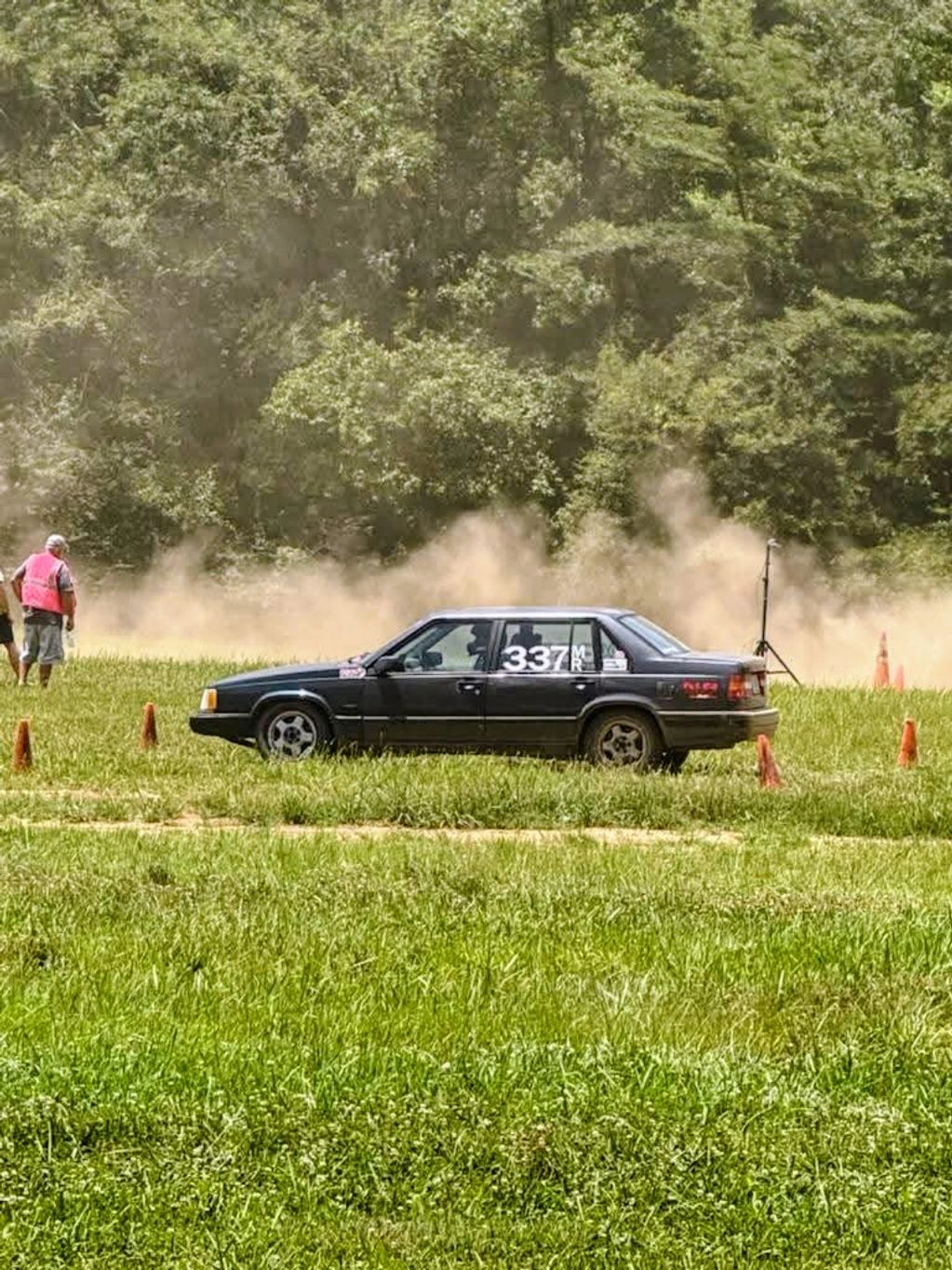 LEE REYNOLDS IN HIS RALLY CROSS VOLVO ON COURSE.